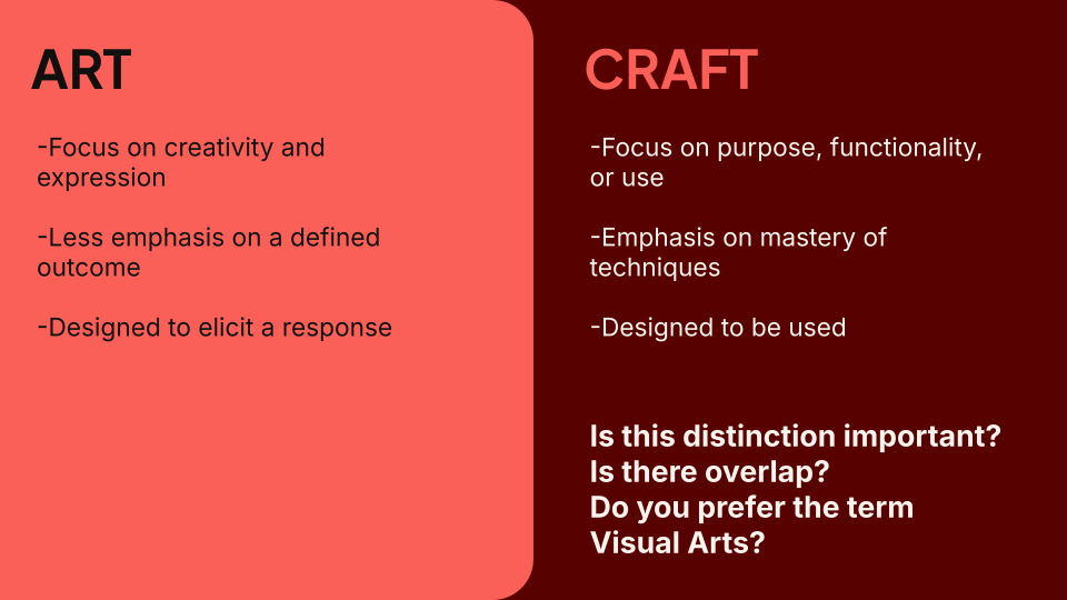 This project is intended for a high school Ceramics 1 class. I collaboratively planned and taught this lesson with Luke Kushlan, another pre-service art teacher. In this lesson, students learned about the history and differences between art and craft, and between functional and non-functional pottery. They also learned about the ceramic artist Peter Volkos. Using these concepts, they created a functional ceramic plate and then creatively modified the plate to make it non-functional.